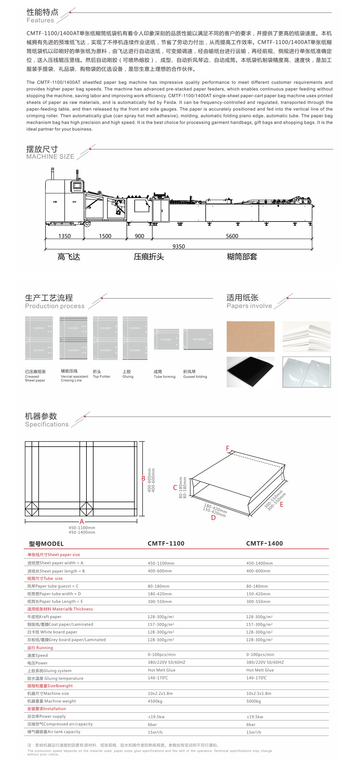 • 紙袋機(jī)使用的紙張大小、厚度,范圍廣