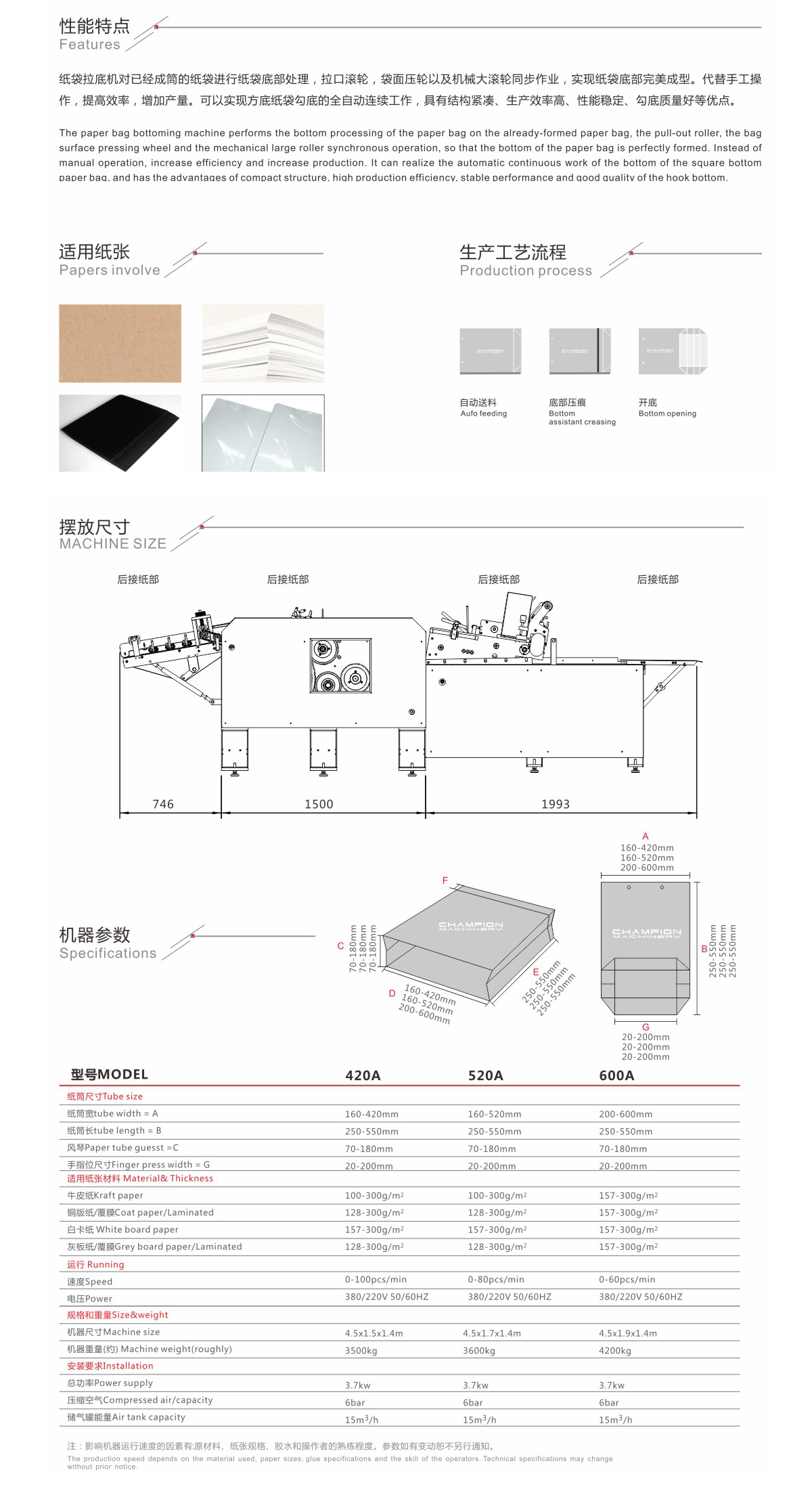 • 紙袋機使用的紙張大小、厚度,范圍廣